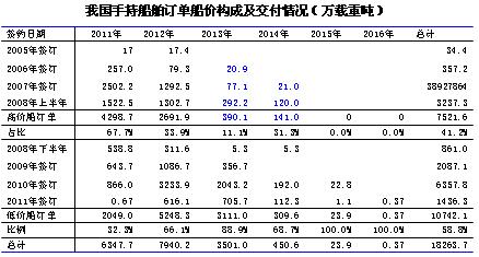 手持訂單中,低價船(危機(jī)爆發(fā)后承接訂單)所占比例接近60%,2012年交付訂單中低價船訂單所占比例預(yù)計將達(dá)66%,而2013年這一比例接近90%。